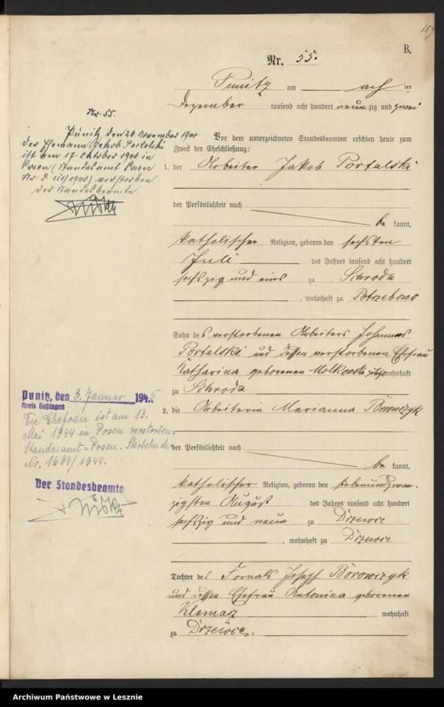 1️⃣ Marianna (1869–1944, Poznań) – mąż: Jakub Portalski